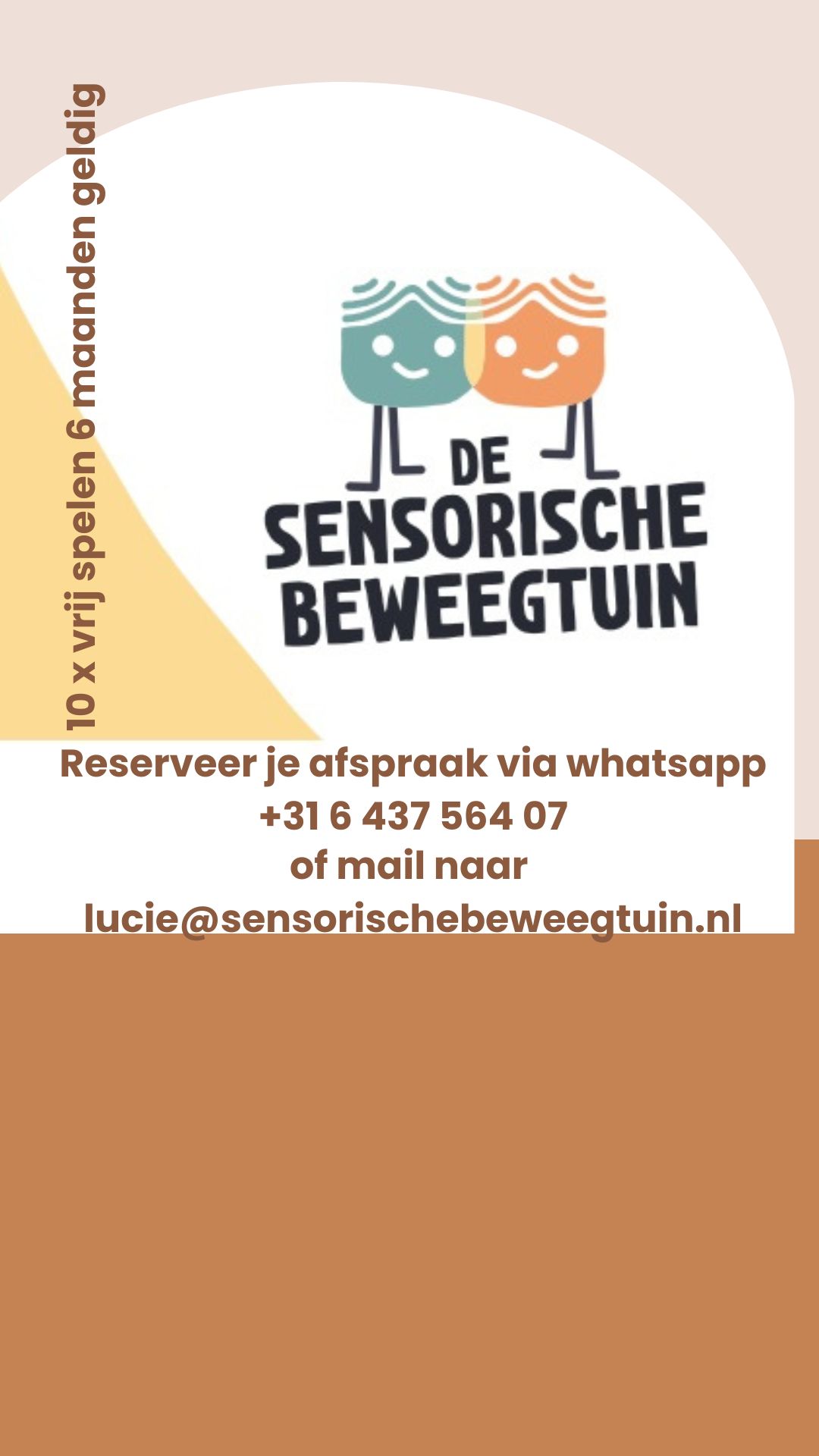 Kom voordeliger spelen in De Sensorische Beweegtuin met deze 10-rittenkaart. Geldig vanaf de eerste keer dat je hem gebruikt tot 6 maanden nadien.